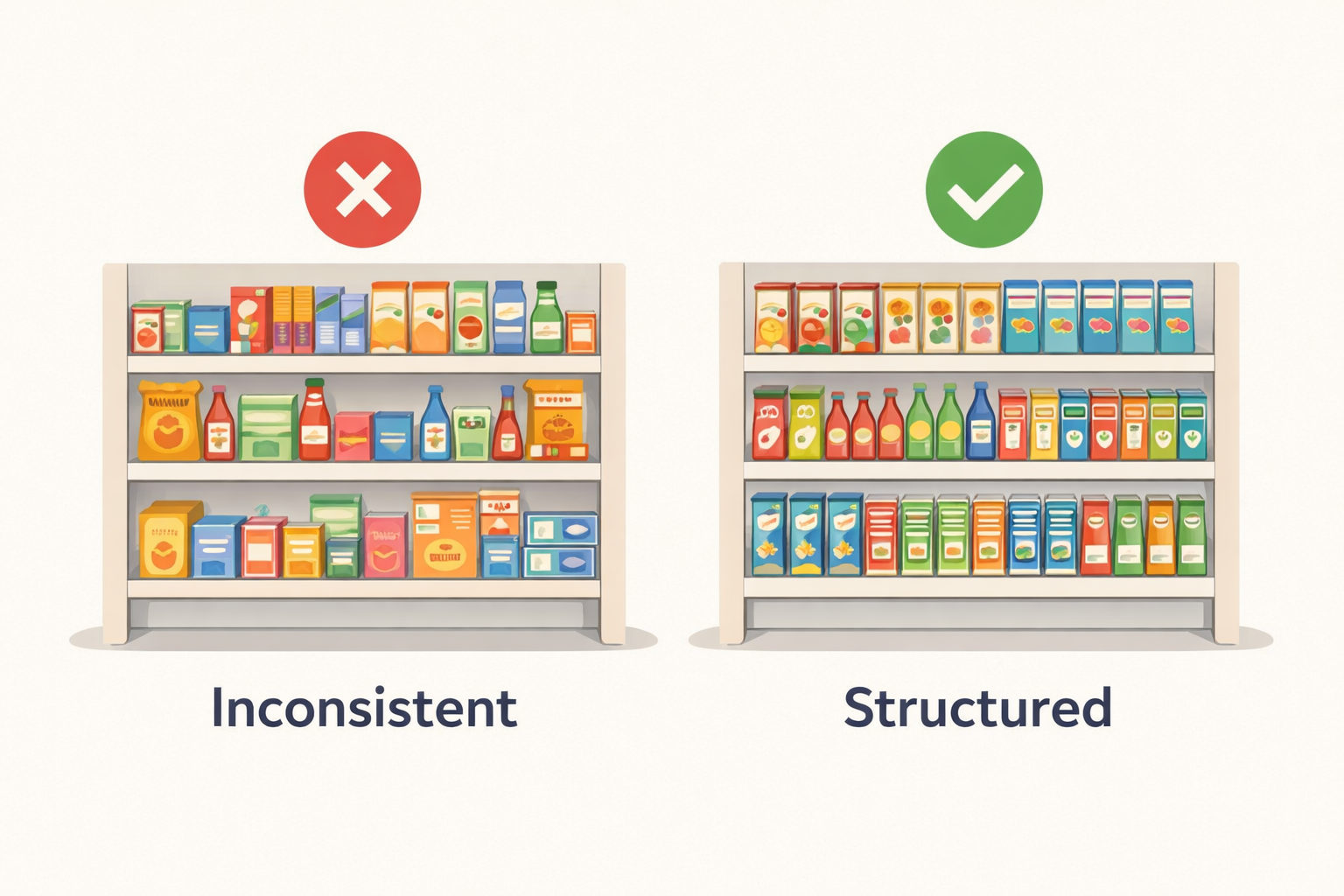 • Exceptions overtaking the standard. Local adjustments, supplier-funded changes and promotional carve-outs accumulate until the original category intent is hard to recognise.